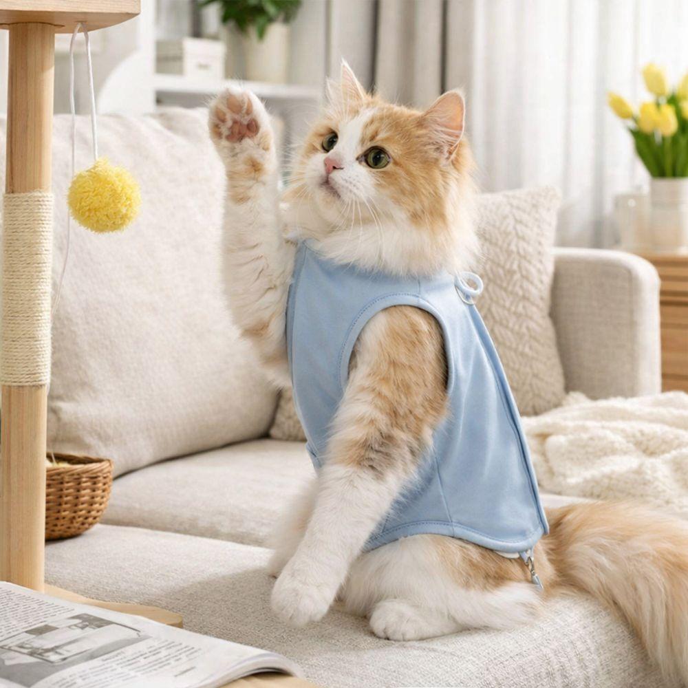 Adjustable Cat Recovery Suit Soft Comfortable Pet Anti-Lick Suit Solid Color Breathable Cat Jumpsuit Wounds Recovery