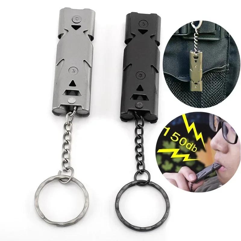Outdoor Survival Whistle Keychain High Decibel Emergency Stainless Steel Double Pipe Camping Hiking Whistle Multifunction Tools