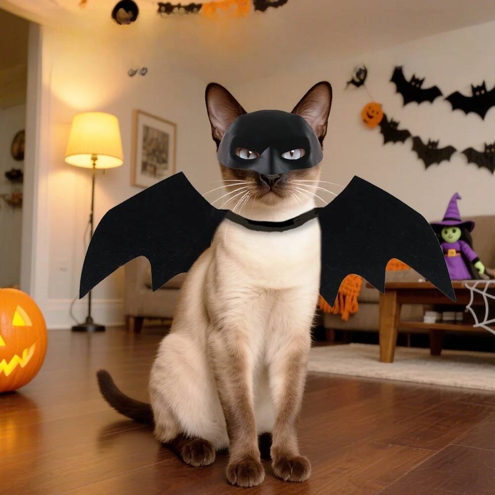 Halloween Pet Black Bat Costume Set with Mask Wing for Cats Dogs Creative Cosplay Cat Dog Halloween Party Pet Supplies