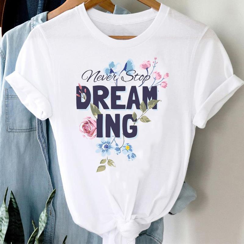 (Asian Size) Tee sweet letter cute Graphic T Shirt Fashion Women Clothing Casual Lady Female Top spring summer Printed Short Sleeve T-shirts