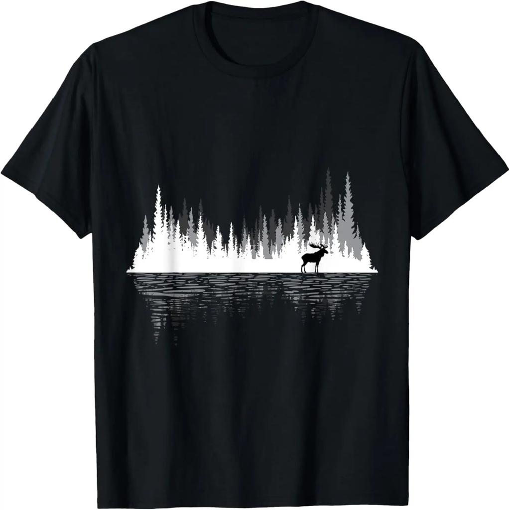 Trees Reflection Wildlife Animal Moose Researcher Hunter T-Shirt