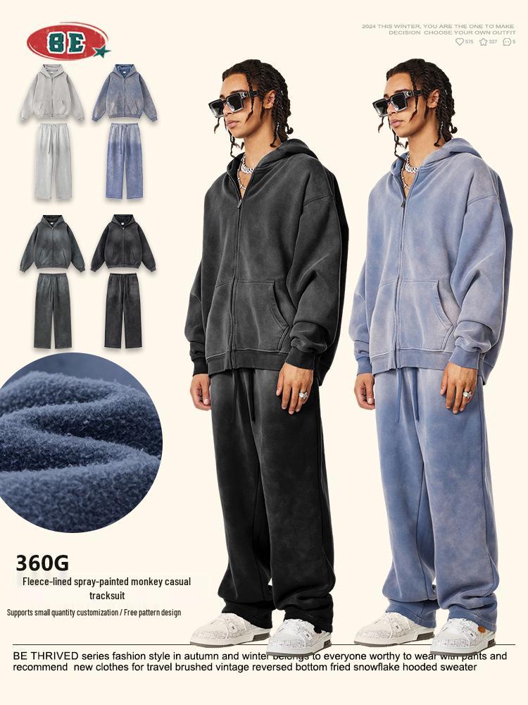 Experience ultimate comfort and style with this men's two-piece set, perfect for the colder months. The ensemble features a hooded sweatshirt with long sleeves, offering warmth and a relaxed, loose fit. Made from soft, cotton material, this set combines quality and coziness. The sweatshirt and straight casual pants both showcase a solid pattern, allowing for versatile styling options. Stay effortlessly on trend with this plus velvet outfit designed for modern, casual wear.
