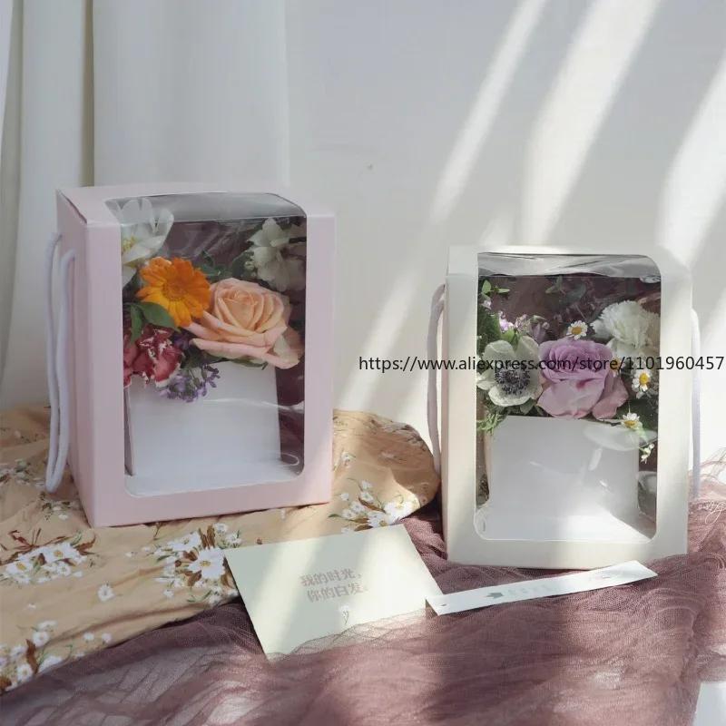 5 ks Květinový box Přenosný úložný box na květiny Dárkové balicí krabičky s průhledným okénkem na svatební párty Květinová dekorace