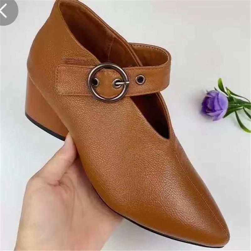 Nové jednobarevné univerzální dámské boty na vysokém podpatku s přezkou, měkkým povrchem a špičatou špičkou, na silném podpatku, kožené boty pro ženy