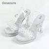 Transparent PVC Sexy Sandals for Women Crystal Decors Square Open Toe Fashion Sandals Ladies Summer Buckle Strap Woman Shoes