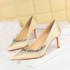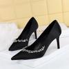 European And American Style Fashion Banquet High Heels Thin Heels Shallow Tiptoe Satin Rhinestone Super High Heels Single Shoes