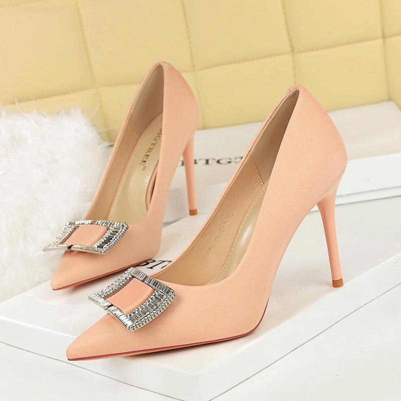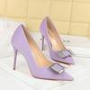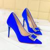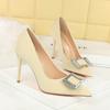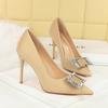 Fashionable High Heels For Women With Light Mouth Square Buckle Rhinestone Slim Heels Single Shoes Pointed Toe High-End Shoes
