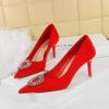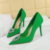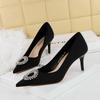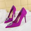 European American Fashionable Shallow Mouth High Heel Shoes Rhinestone Round Buckle Single Shoes Pointed Toe Thin Heel Shoes