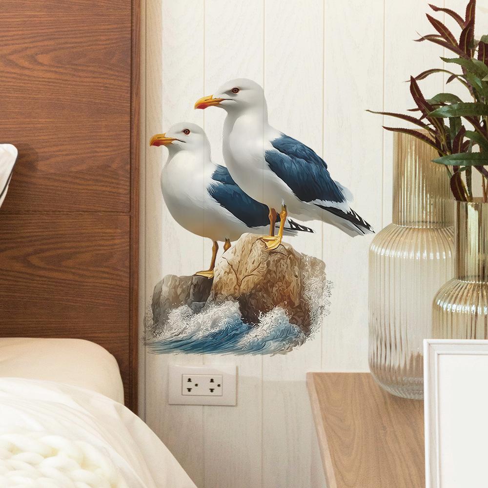 Scenic Seagull on Rocks Wall Sticker for Bedroom Bathroom Home Decor Self-Adhesive Removable Decal