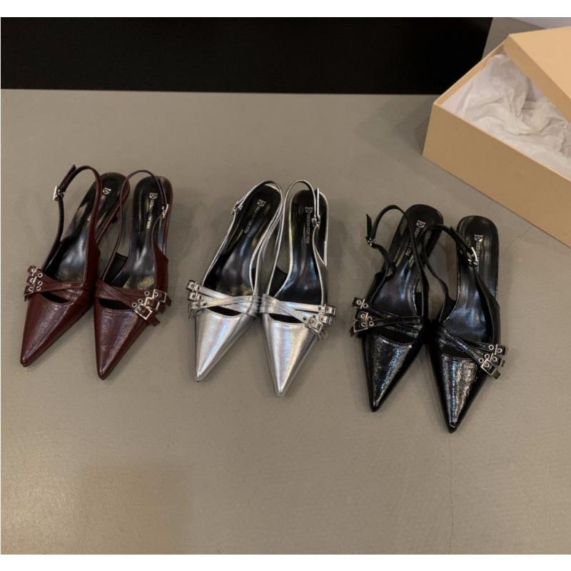 Nové Sandály na Vysokém Podpatku Dámské Boty Jaro Léto Obuv Špičatá Špička Párty Dámské Boty Módní Sponkový Pásek Dámské Lodičky