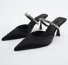 Dámské módní boty s krystalovým páskem Vysoké podpatky Pantofle 2025 Letní Špičaté Vodní Stiletto Mules Sandalia Dámské Sexy Párty Lodička
