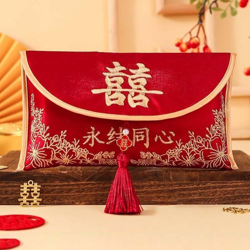 New Year Blessing Words Brocade Red Envelope Brocade Cloth Tassel Spring Festival 2026 Money Pocket Embroidery HongBao