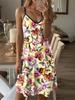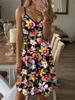 Europe, America, spring and summer new casual fashion flower print loose suspender short round neck medium and long dress