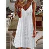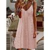 European and American women's clothing summer new hollow jacquard V-neck suspender solid color dress