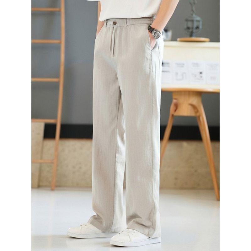 Old Qian Style Pure Linen Pants Men's Summer Thin Straight Trousers Foreign Trade Men's Cotton and Linen Casual Pants