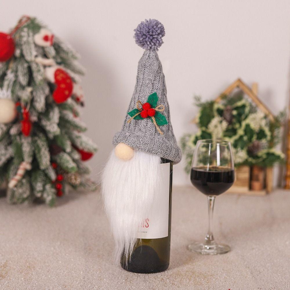 2pcs Cartoon Christmas Gift Wine Bottle Cover Knitted Exquisite Rudolf Faceless Bottle Bag Reusable Champagne Bottle Cover