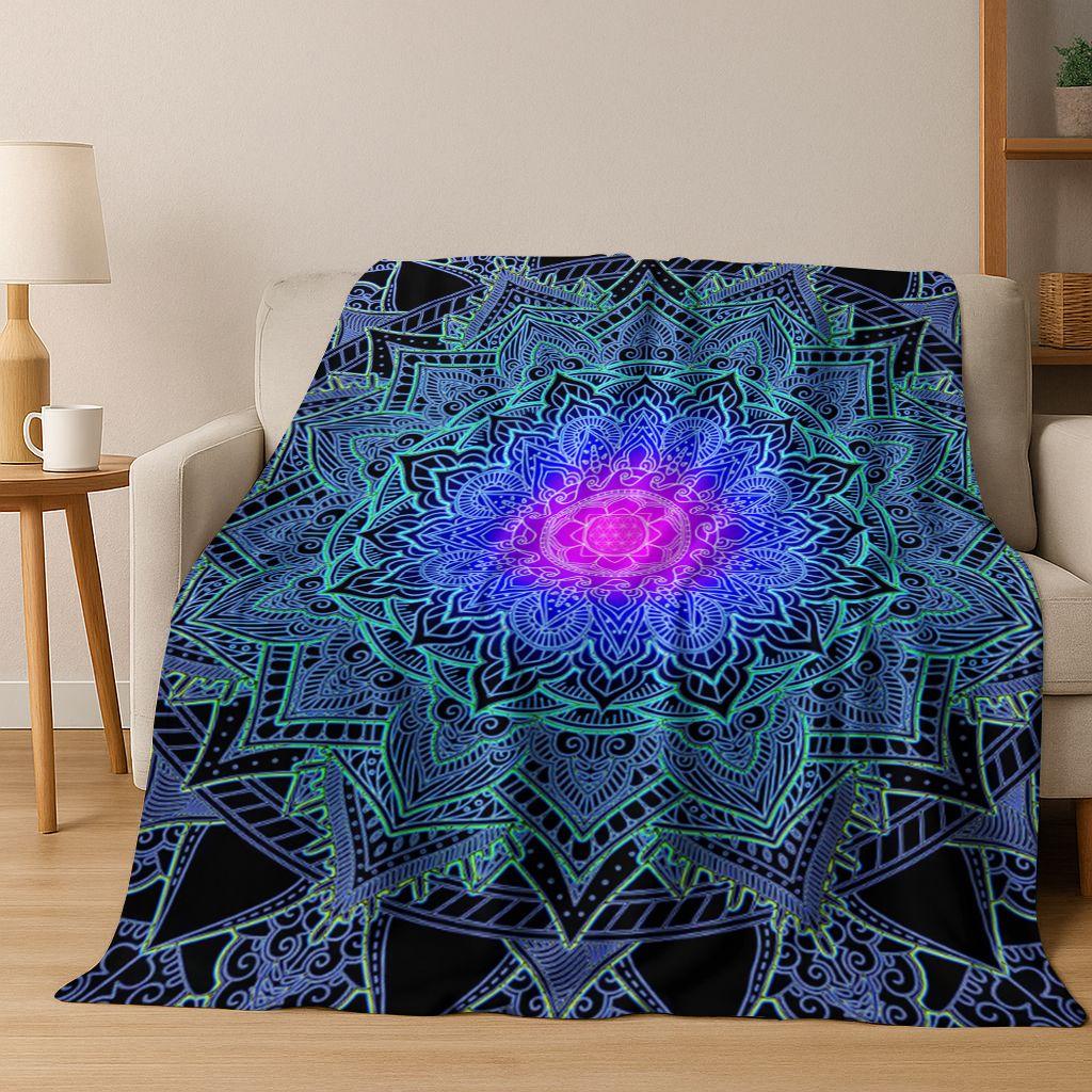 Rainbow Mandala Flower Chakras Yoga Bohemia Art Flannel Blanket,Cozy Soft Throw Blanket for Home Bedroom Bed Sofa Cover Kid Gift