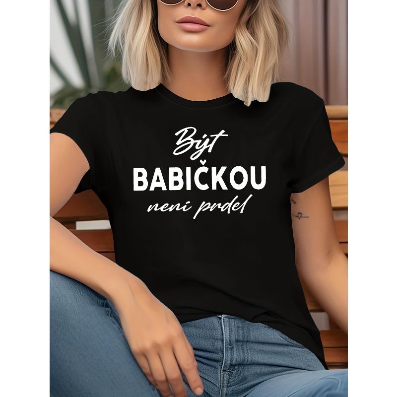 Czech Funny Grandma Saying Print T-Shirt Crew Neck Short Sleeve Casual Gift Top