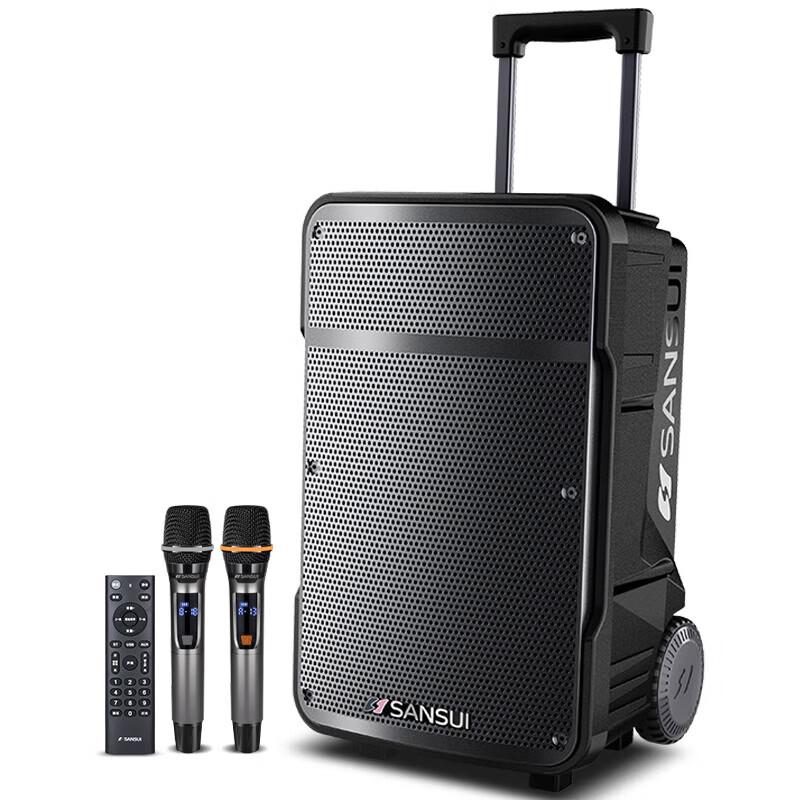 SANSUI A12 Portable KTV Trolley Speaker with Dual Wireless Microphones CN plug (adapter included)