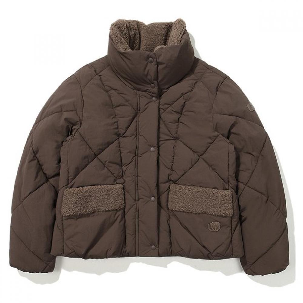 [OSLO (Oslo)] W Teddy Diamond Quilting Puffer (Brown) is women's outdoor clothing made of lightweight recycled nylon material, boasting a light wearing experience. It features diamond quilting details and string adjustments to create various silhouettes. The inside of the collar and pockets are adorned with fur details for a soft touch.