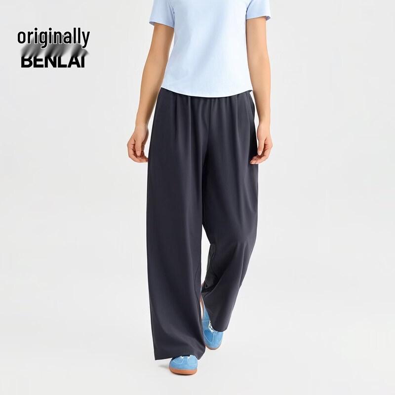 BENLAI Women's Elastic Waist Knit Wide-Leg Sporty Casual Pants