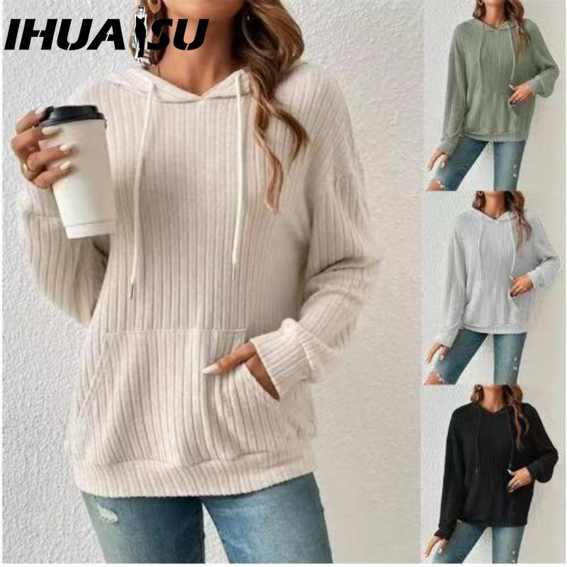IHUASU Dámská móda Neformální jednobarevný potisk Mikiny a mikiny s dlouhým rukávem a kapucí