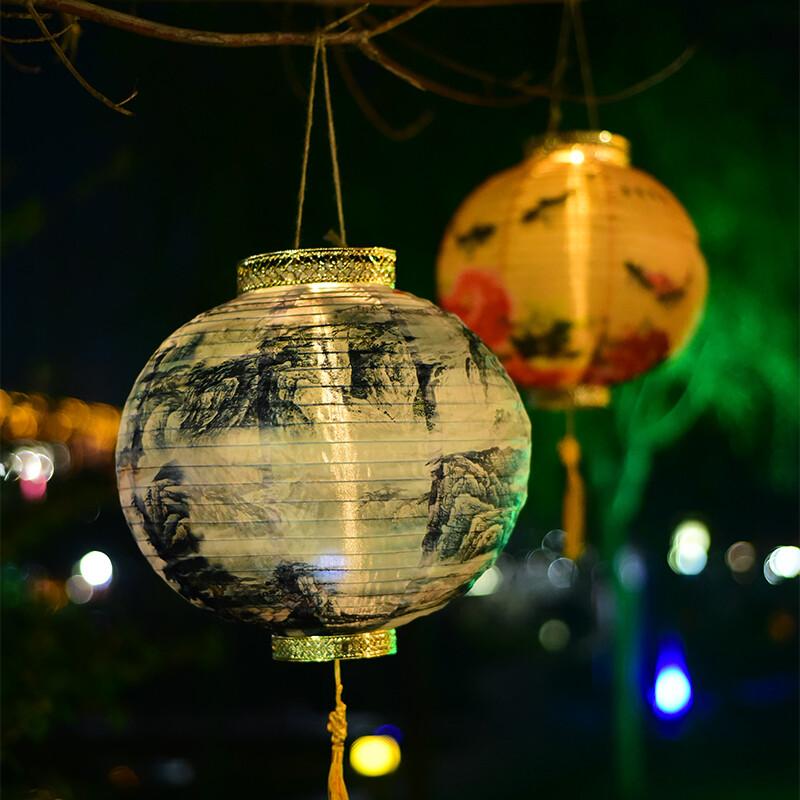 32x36cm Chinese Ancient Handheld Lantern Hanging Lamp Ink Garden Holiday Decor Printed Flower Round Chinese Lantern Party Decor