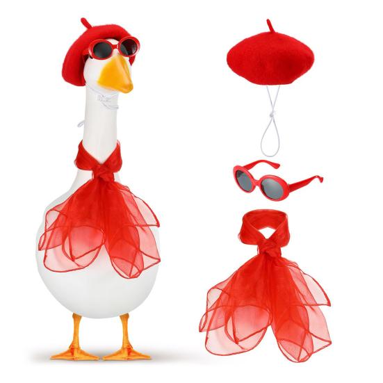 Vibrant Fashion Theme Design: This accessory set embraces a bright red color palette across all piecesincluding the scarf, sunglasses, and plush beretcreating a cohesive and lively look. The bold hues inject energy and fun, making it ideal for crafting a unique and eye-catching goose ensemble.
