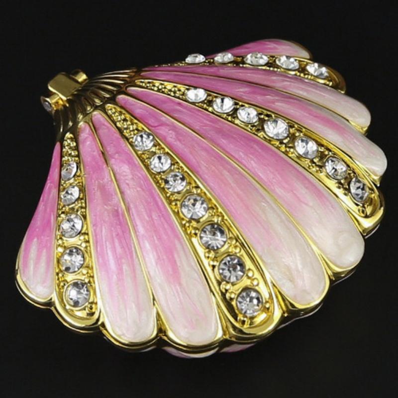 Portable Mini Jewelry Storage Box Bracelet Organizer,Embossed Shell Shape Inlaid Gem Alloy Ring Storage Jar Dresser Display Gift