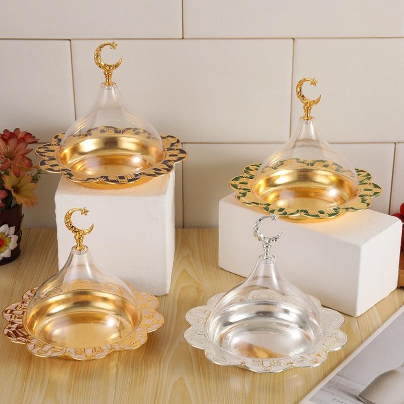 Eid al-Fitr Circle Shape Fruit Tray,Golden With lid Acrylic Alloy Tea Disc Home Cheese Food Plate,Snack Disc Table Decoration