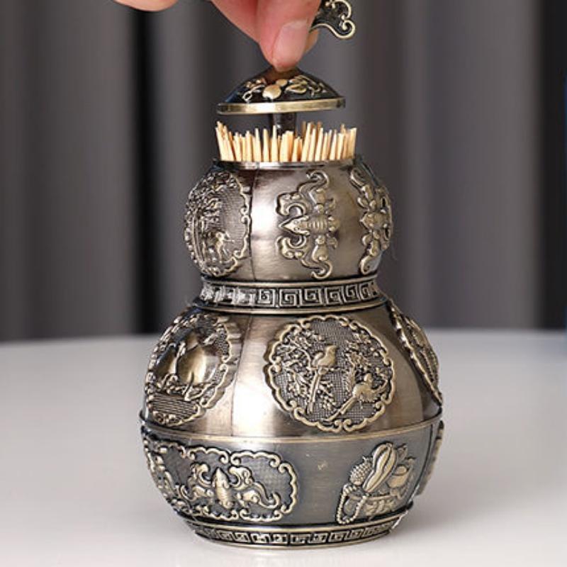 Automatic Push-type Toothpick Box Retro Alloy Toothpick Holder Beer Bottle Opener Desktop Organizer Party Decoration Unique Gift