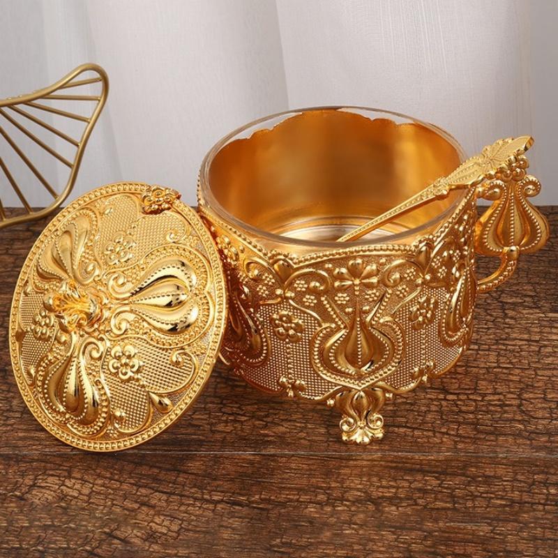 European Style Seasoning Jar,Golden Alloy With lid Spice Container Salt Butter Organizer,Coffee Beans Storage Jar,Kitchen Tools