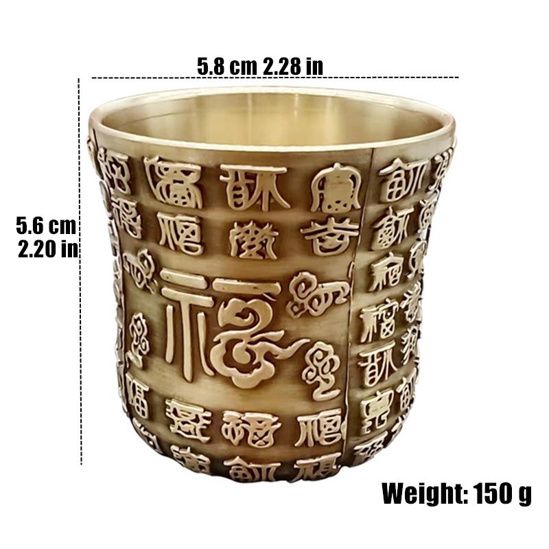 Bronze Engraved Blessing Mini Spirits Vodka Cup Liquor 50ml Retro Brass Portable Personalized Tea Tumbler Glass Home Decorative