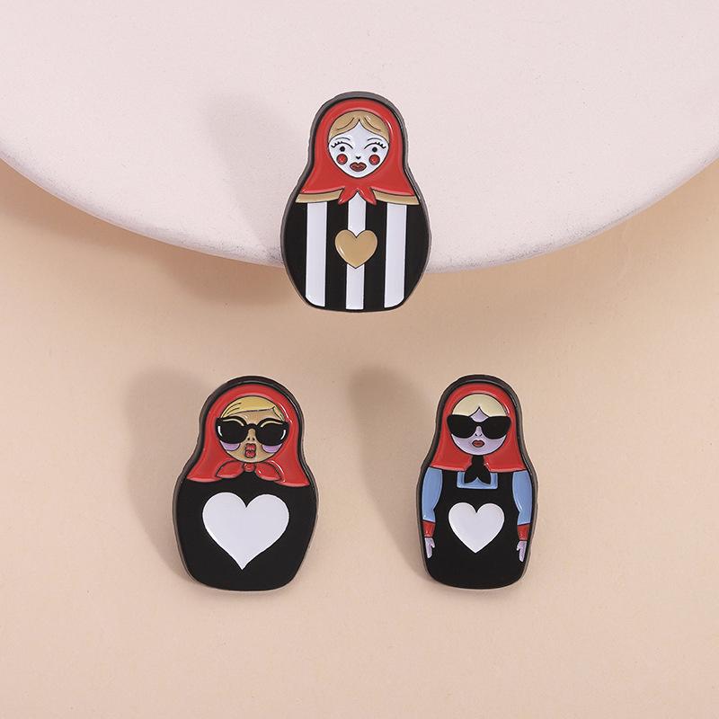 Cultural Costume Collected Enamel Pin Classic Nesting Doll Metal Brooches Lapel Badge Jewelry Gift For Friends