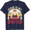 Mens Clothing Jesus Is My Spotter Oversized Tshirt Funny Christian Weightlifting Gym Fitness T Shirt Fitness Cotton Tshirt