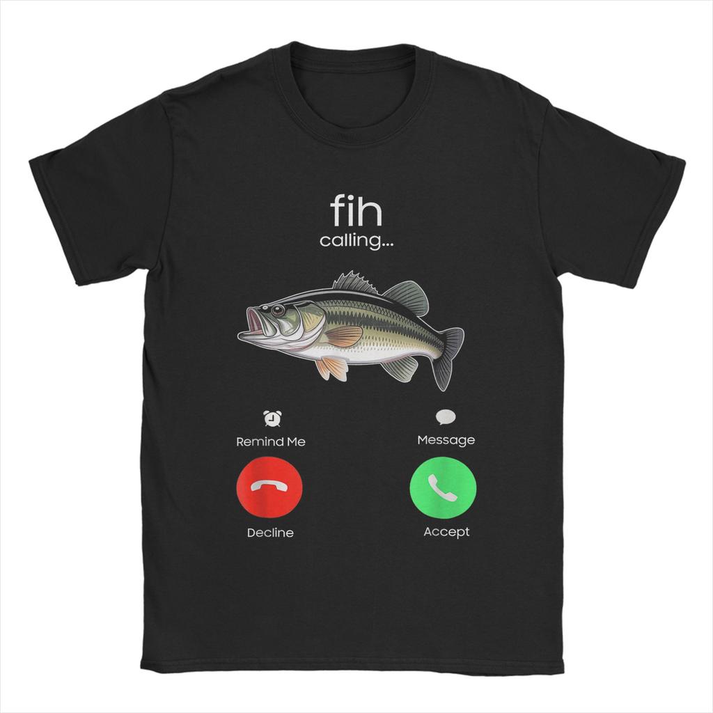 Fih Calling Remind me Message Decline Accept Phone Call Fish TShirt for Men Cotton Tee Shirt Short Sleeve T Shirt Plus Size