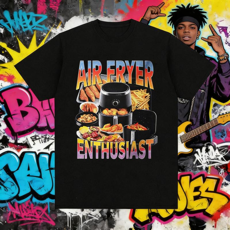 2025 Summer Air Fryer Enthusiast Funny Cooking Meme TShirt Hot Sale Couples Clothing Funny 100 Pure Cotton Printed Tshirt