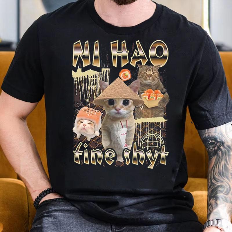 Ni Hao Boutique Shyt Funny Cat Graphic Tshirt Men Retro Harajuku Fashion Tshirt Summer Casual 100 Cotton Loose Tshirt