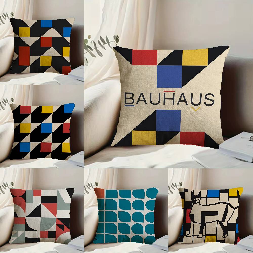 Abstraktní B-Bauhaus Geometrický povlak na polštář Povlak na polštář proti roztočům Neviditelný zip hedvábný krátký plyš Potah na polštář na pohovku