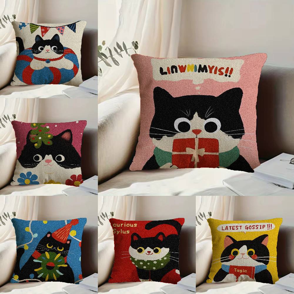 Cartoon Cat Cute Pillow Case Anti-dustmite Pillowcase Invisible zipper silky short plush Sofa cushion cover