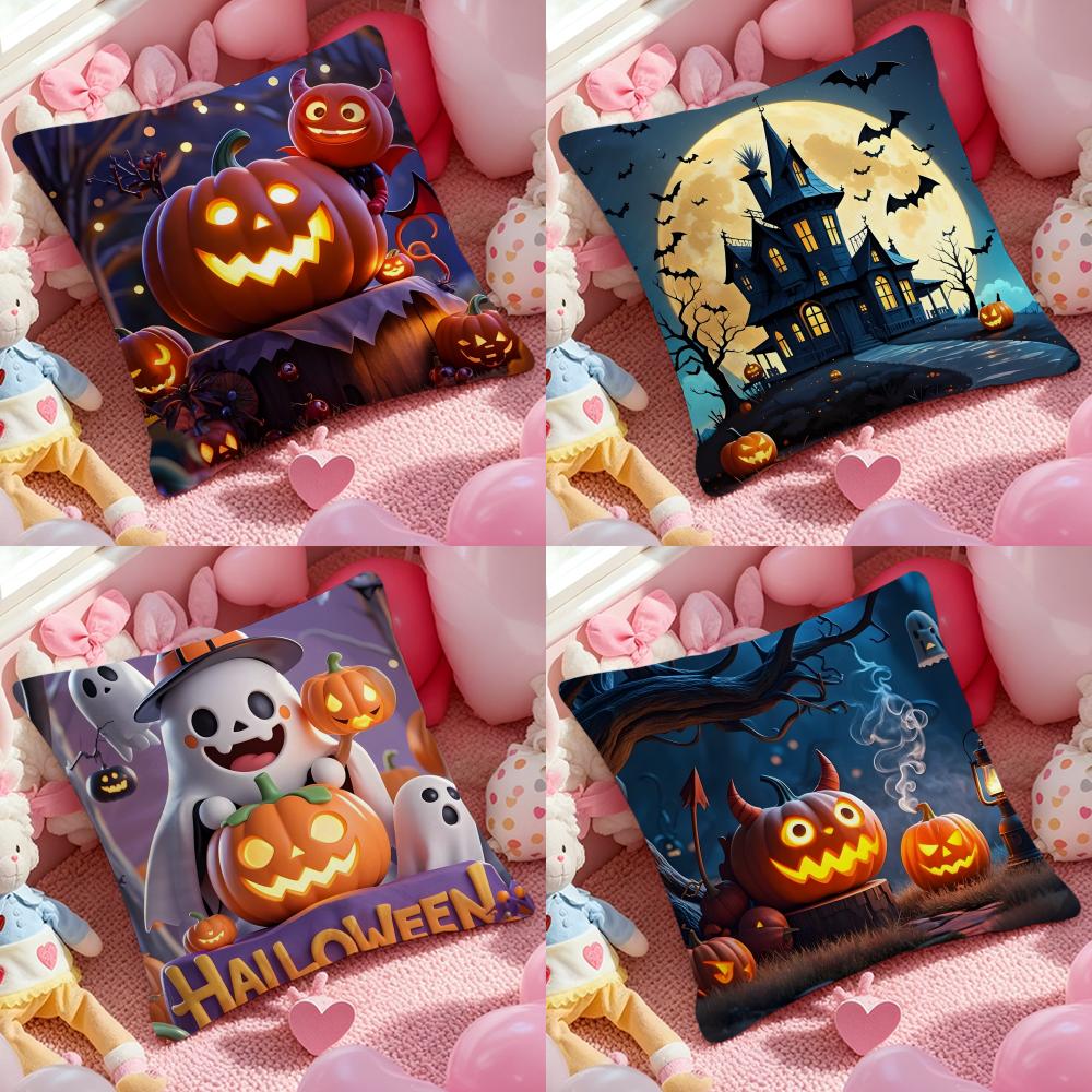 Halloween Cushion Cover Anti-dustmite Pillowcase Invisible Zipper Silky Short Plush Sofa Cushion Cover