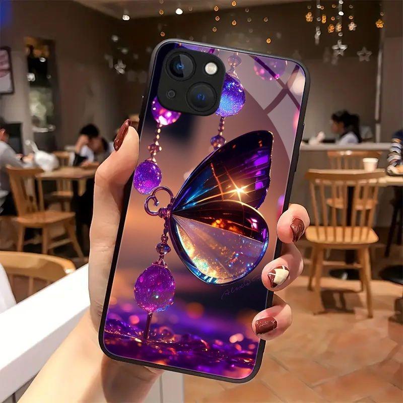 Tvrzené sklo na telefon s motivem křišťálového motýla Pro iPhone 17 Pro Max 11 12 13 14 15 16 Pro 17Air 16E 7 8 Plus XR XS X Kryt
