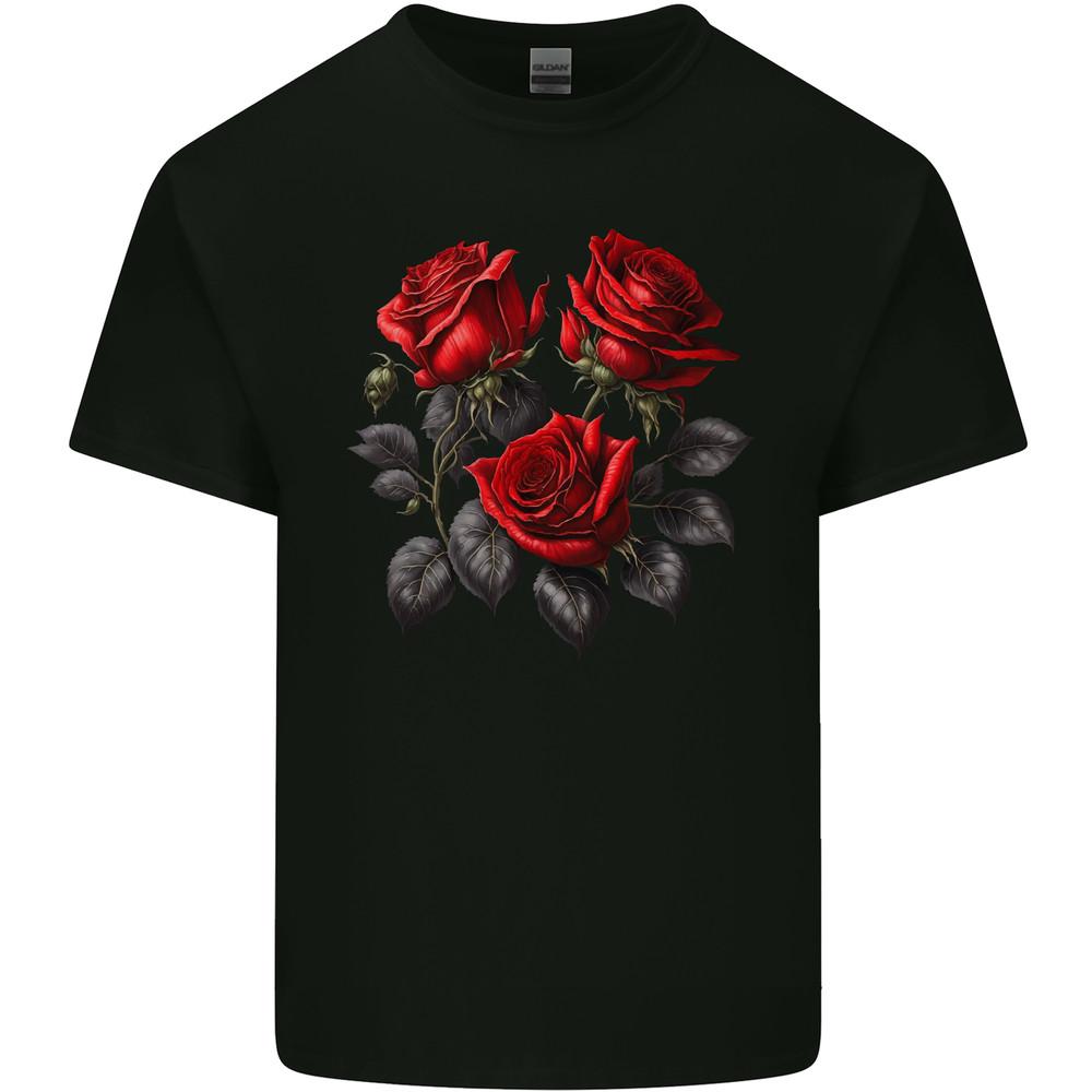 3 Red Roses Gothic Goth Mens Cotton T-Shirt Tee Top Unisex T-Shirt