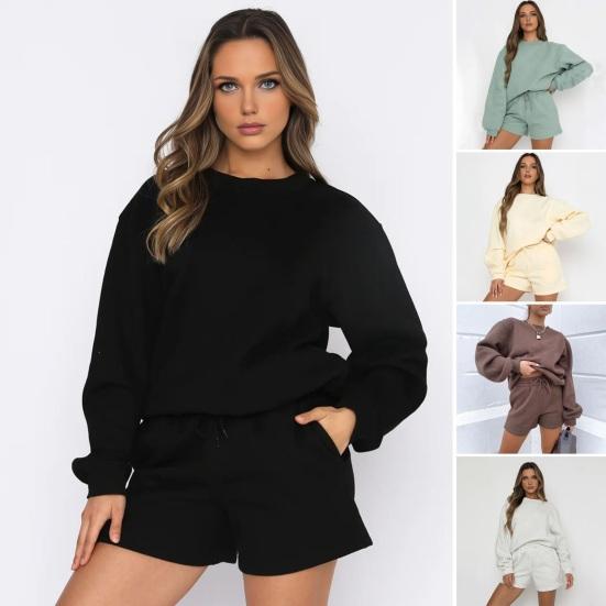 Dámské dvoudílné oblečení Oversized Ležérní Domácí Sladěná Sada Podzimní Dlouhý Rukáv Mikina Šortky Teplákové Soupravy