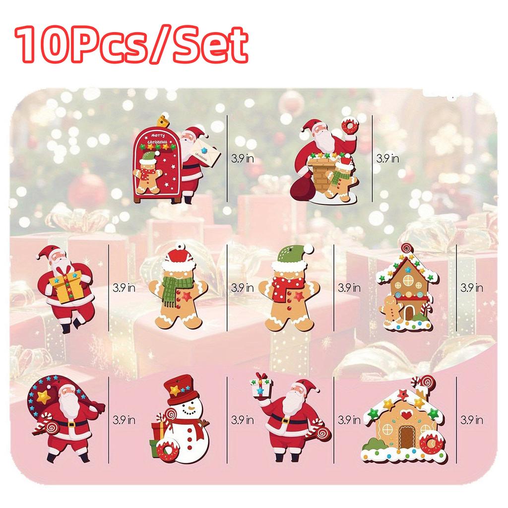 10Pcs Christmas Wooden Pendants Santa Claus Xmas Tree Hanging Ornaments Home Party Christmas Decor New Year Gifts