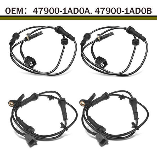 4 pcs of 47900-1AD0A, 47900-1AD0B fit Nissan X-Trail '11-'12 front/rear wheel speed sensors.