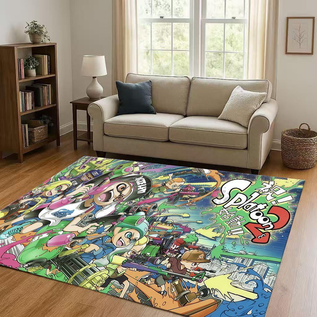 3D Splatoon Game Cartoon Living Room Non Slip Area Rug Soft Carpet for Bedroom Playroom Sofa,Easy Clean Home Decor Doormat