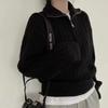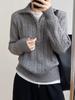 Dámský béžový pletený svetr s půlzapínáním a límcem, ležérní