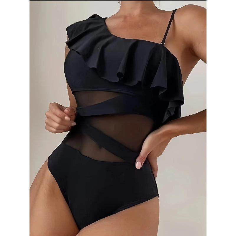 Letní Evropský & Americký Síťovaný Jednodílný Plavky s Volánky a Výřezy | Dámské Jednodílné Plavky, Romantický Styl pro Dovolenou u Moře, Letní Dovolená na Plážové Vile