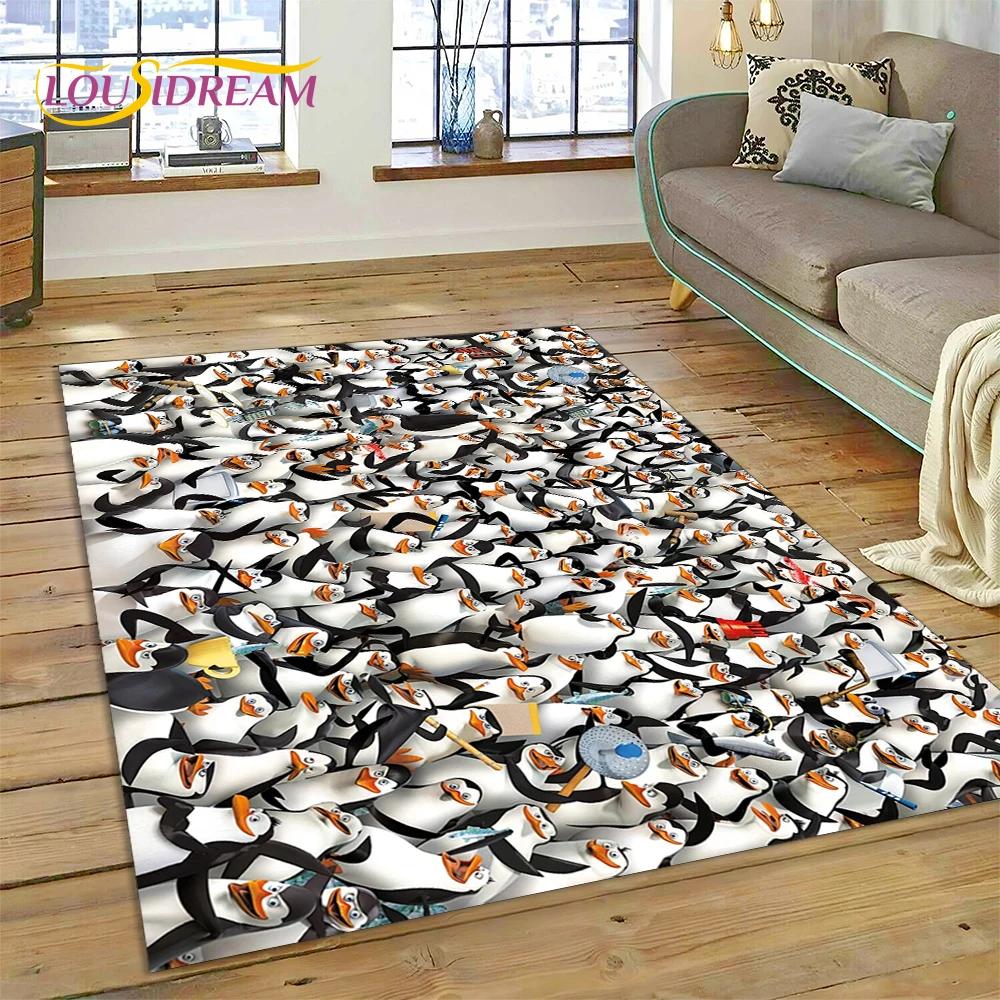 Roztomilý kreslený koberec s tučňáky z Madagaskaru pro obývací pokoj, ložnici, domácí dekoraci pohovky, koberec do dětského pokoje, protiskluzová podložka na podlahu, dárek